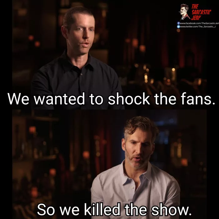 И Джонката 8 сезона го игра спасител, само за да може накрая да утрепе Денерис и да се забие на Вала.