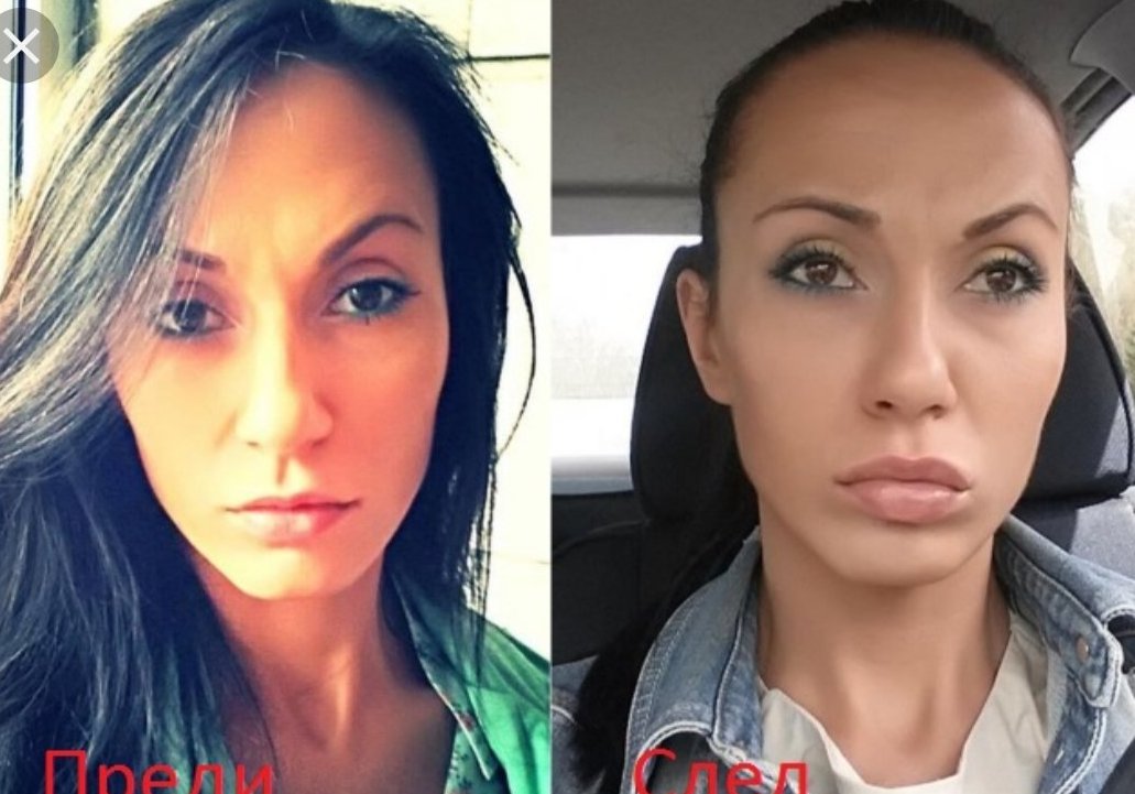 Само тая "работа" с устата хич не ни харесва. Защо, бе, дами? Защо се обезобразявате така? Хайде, днес си слагат хиалурон, той се резорбира, ами едно време с тоя силикон бая девойки се осакатиха. Познавам една такава, карикатура и страшилище с вулгарен привкус- за вечни времена, а иначе беше красиво, нежно момиче.