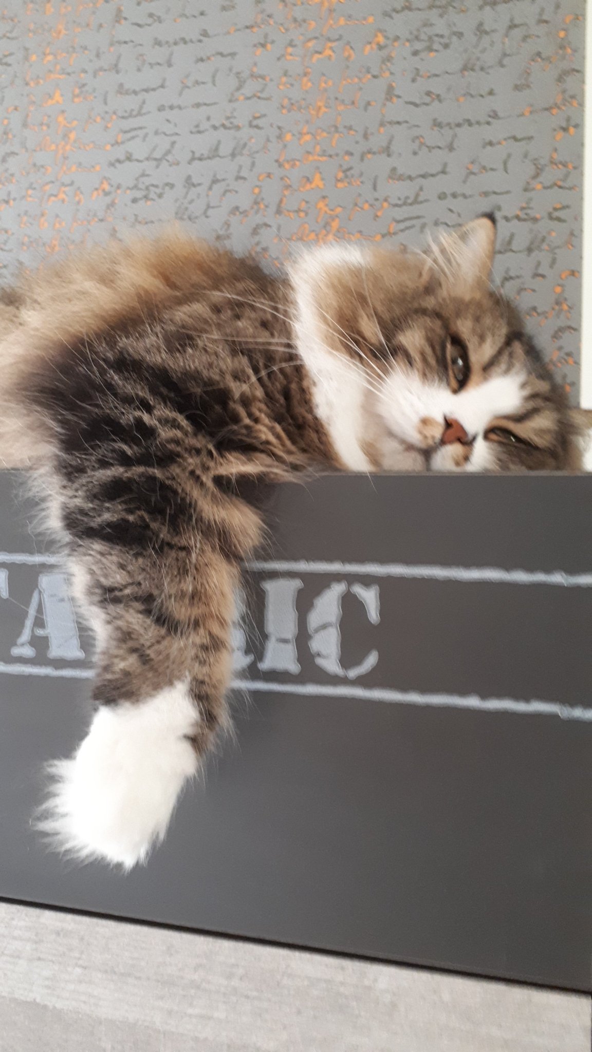 Това е снимка на Рижко от днес. Дори се вижда как му е свита предната лапичка, защото тъпче във въздуха.