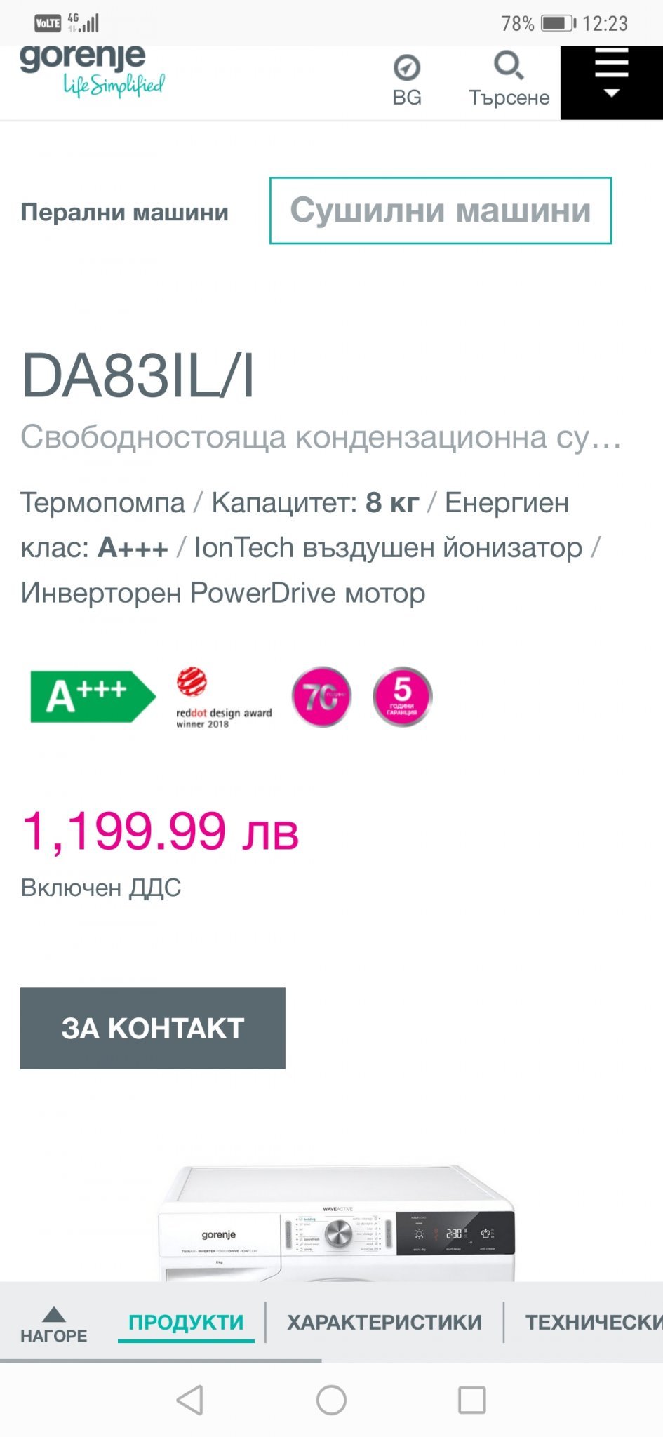 В интерес на истината точно този модел(от снимката.линка препраща към друг модел) ми е другия избор за сушилня.Все ще се двоумя между двата модела.Не се бях заглеждал в класа на кондензация на gorenje.Благодаря.
