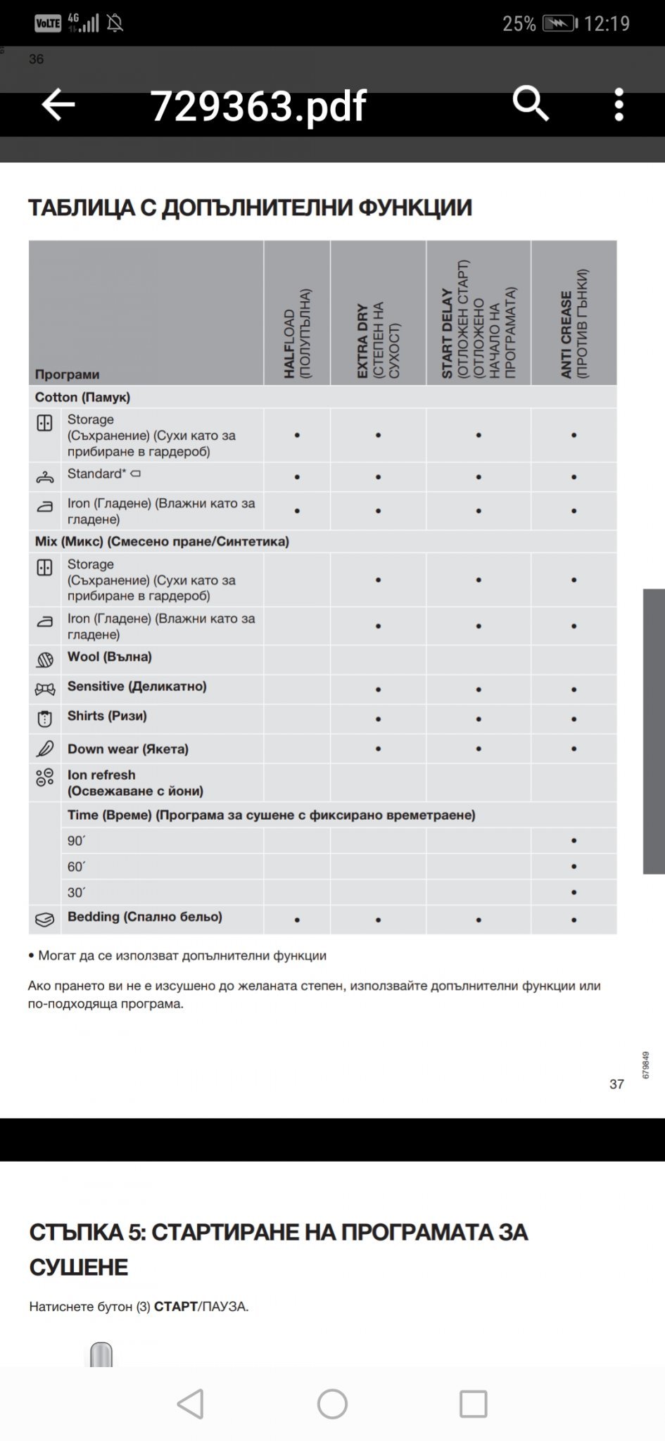 Даммм,при мен обаче я няма тази програма и за това никъде не ми излизат тези градуси. При наличието на такава програма вече има логика да се сушат на нея по-диликатни материи.Въпреки това смятам,че и на 50 C нищо няма да им се случи,но всеки сам си преценява. За мен се губи смисъла от сушилня ако трябва да робувам на разделяне на материи. По-добре всичко на простира...