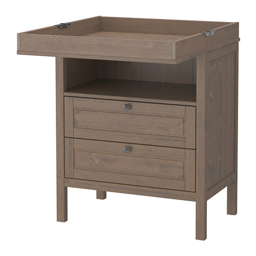 Повивалника ми е от Икеа,модел SUNDVIK.Мястото,което е отредено за повиване се сгърва и става на обикновен шкаф с 2 дълбоки чекмеджета.Върши ми много добра работа,но е може би една идея по-високо,защото майка ми(1.62) се надига на пръсти,за да положи детето за смяна.