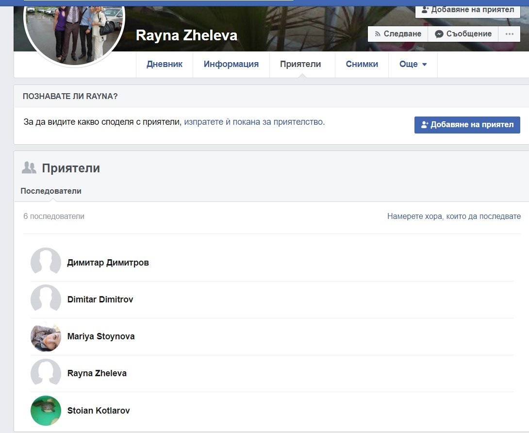 Ами докладвах профила на втората Rayna  Zheleva, защото е фалшив, създаден само, за да плюе по човека в страницата на предаването.