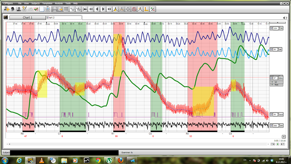 Въпросите се оценяват задължително и при трите психофизиологични следи – дишане, сърдечна дейност (кардио следа) и изпотяване (електродермална активност). Всяка физиологична следа се оценява поотделно по специфични правила.