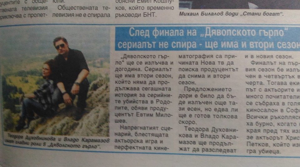 Във фейсбук пишат, че тази сутрин по БГ радио Карамазов е бил гост и е разказал, че от телевизията са искали още един сезон. Милошев се е съгласил и си е дал време 1г, защото за да стане 2ри сезон по добър от 1ви, трябвало добра сюжетна линия, която изисква време!