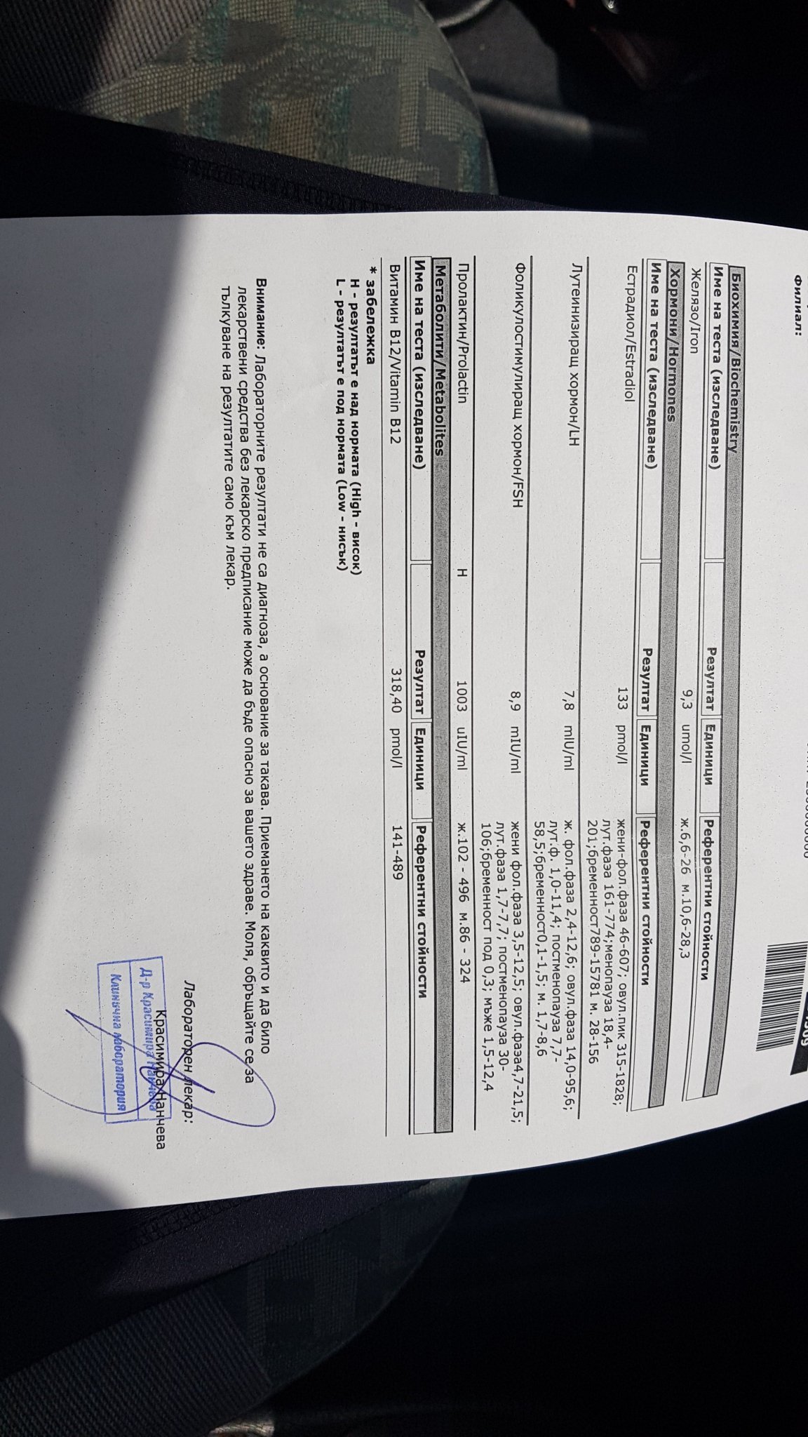 Резултатите от изследванията на полови хормони предоставят информация за различни хормонални дисбаланси и проблеми, свързани със зачеването. Например, ниските нива на прогестерона могат да доведат до нередовен цикъл и трудности при зачеване. Високите нива на тестостерона могат да причинят акне и други проблеми. Тези резултати могат да насочат към необходимостта от допълнителни изследвания и консултации с ендокринолог. Резултатите от хормоналните изследвания предоставят информация за нивата на различни хормони, като TSH, Prolactin, LH, FSH, Estrogen и Testosterone. Те се използват за оценка на репродуктивната функция и могат да покажат проблеми с яйчниците, щитовидната жлеза функция, възможни проблеми с бременността и други здравословни състояния. Резултатите от изследване на полови хормони предоставят важна информация за репродуктивното здраве. Например, високите нива на LH и FSH могат да показват проблеми с яйчниците или овулацията. Високите нива на естрадиол (Estrogen) и прогестерон (Progesteron) могат да показват здравословна овулация, докато високите нива на пролактин и TSH могат да повлияят на репродуктивната функция. Препоръчително е да се консултирате със специалист, като гинеколог или ендокринолог, за тълкуване на резултатите и определяне на подходящото лечение.