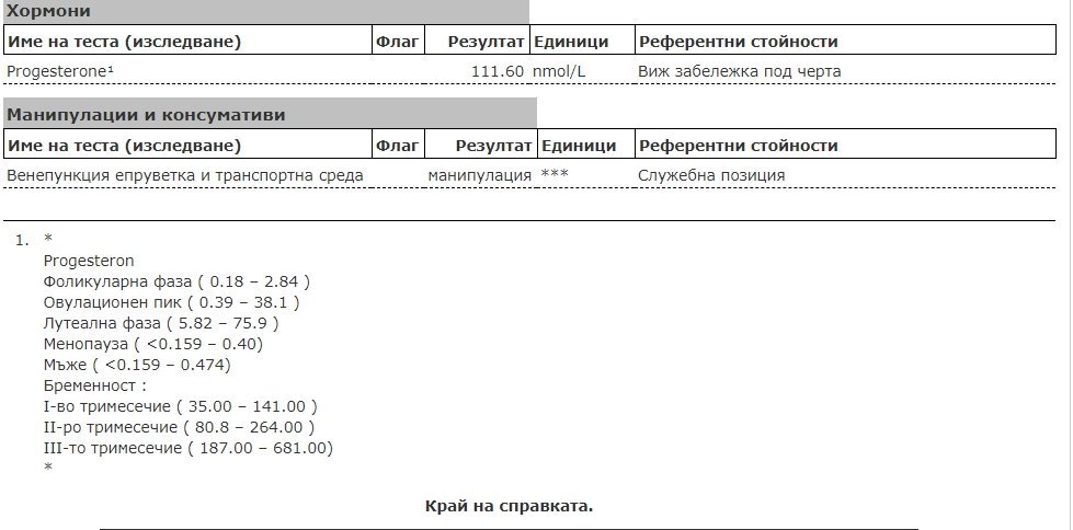 Резултатите от изследванията на полови хормони предоставят информация за различни хормонални дисбаланси и проблеми, свързани със зачеването. Например, ниските нива на прогестерона могат да доведат до нередовен цикъл и трудности при зачеване. Високите нива на тестостерона могат да причинят акне и други проблеми. Тези резултати могат да насочат към необходимостта от допълнителни изследвания и консултации с ендокринолог. Резултатите от хормоналните изследвания предоставят информация за нивата на различни хормони, като TSH, Prolactin, LH, FSH, Estrogen и Testosterone. Те се използват за оценка на репродуктивната функция и могат да покажат проблеми с яйчниците, щитовидната жлеза функция, възможни проблеми с бременността и други здравословни състояния. Резултатите от изследване на полови хормони предоставят важна информация за репродуктивното здраве. Например, високите нива на LH и FSH могат да показват проблеми с яйчниците или овулацията. Високите нива на естрадиол (Estrogen) и прогестерон (Progesteron) могат да показват здравословна овулация, докато високите нива на пролактин и TSH могат да повлияят на репродуктивната функция. Препоръчително е да се консултирате със специалист, като гинеколог или ендокринолог, за тълкуване на резултатите и определяне на подходящото лечение.