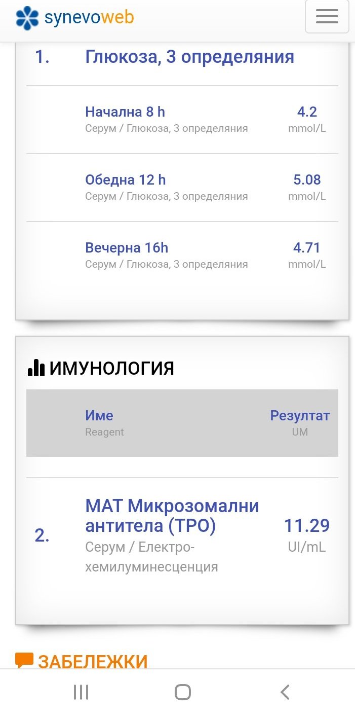 бях насочена към ендокринолог заради съмнение за хипертиреоидизъм. Щитовидната ми жлеза е уголемена, писали са уж нетоксична гуша. Това са резултатите от изследванията ми: