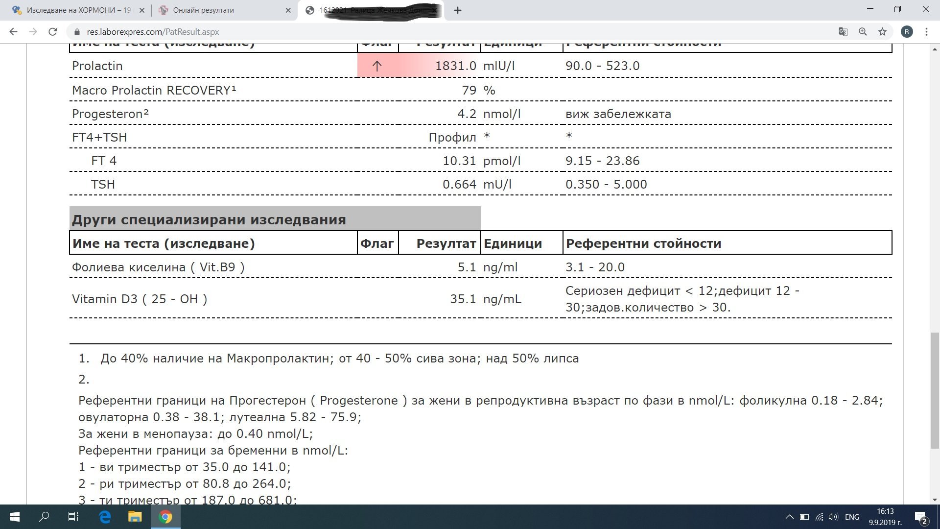 Отделно ендокриноложката каза, че TSH  е ок, щяло да бъде проблем, ако и другите стойности на щит жлеза не били добре..... Относно пролактина иска да да пусна още едно изследване между 3-ти и 5-ти ден от цикъла, като ми препоръча къде с условието 20 мин пълен покой и чак тогава, ако пак е над норма, ще правим ядрено магнитен на хипофизна жлеза...