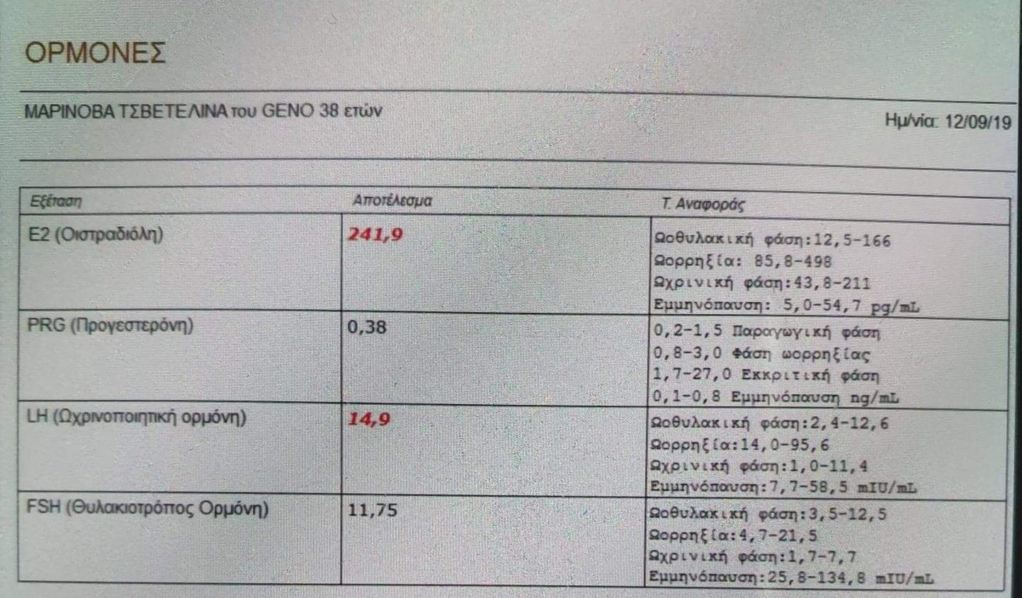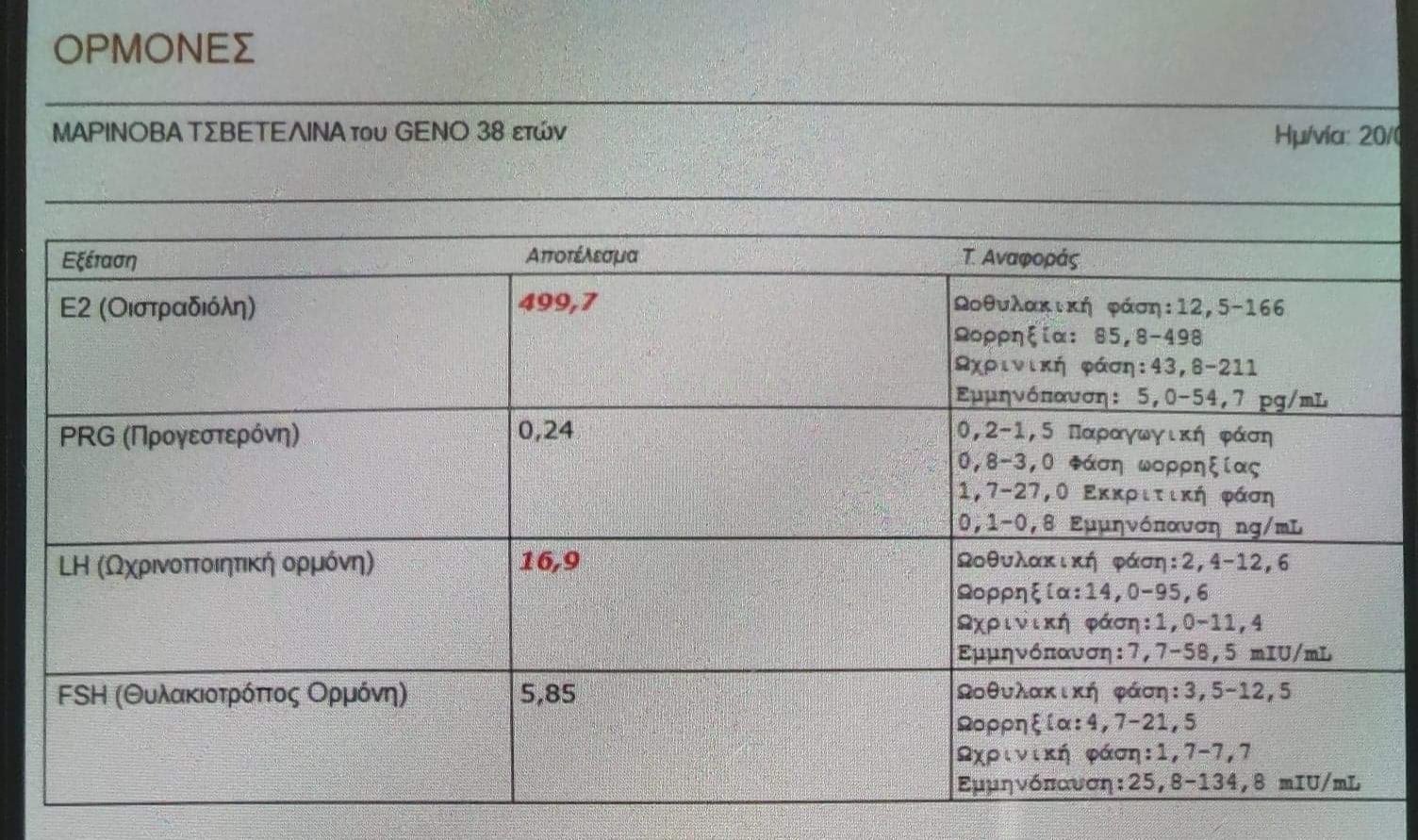 При първите изследвания: ЛХ и Е2 са високи и е много вероятно да е имало ЗФ/киста.