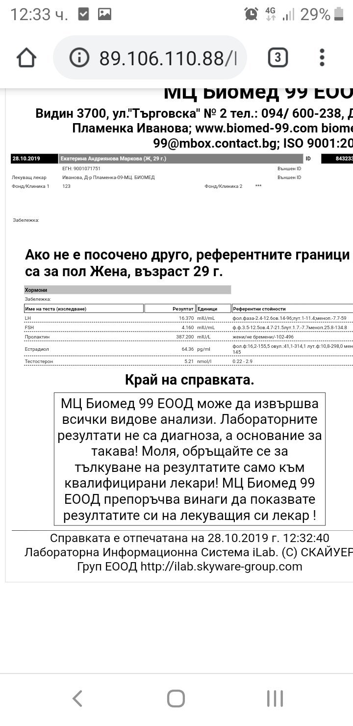 Назначи ми хормонални изследвания и днес излязоха резултатите и не знам какво да мисля, естествено в понеделник ще се обаждам за час при нея!