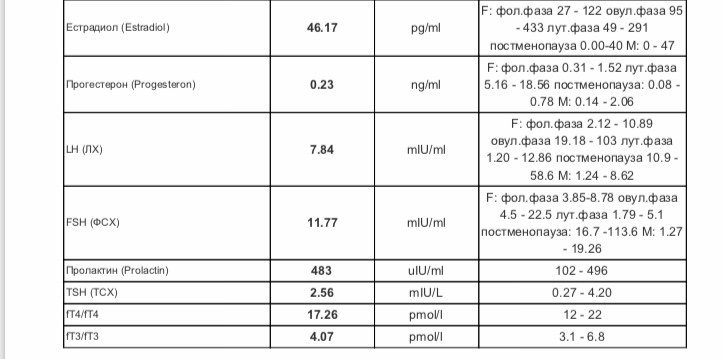 писах в друга тема, но искам мнение и от Вас. Часът при лекаря ми е в края на месеца, но след резултата от АМХ много се притеснявам.Изследването е правено на 2-ри ден от цикъла в лаборатория Лина. Ето и стойностите: