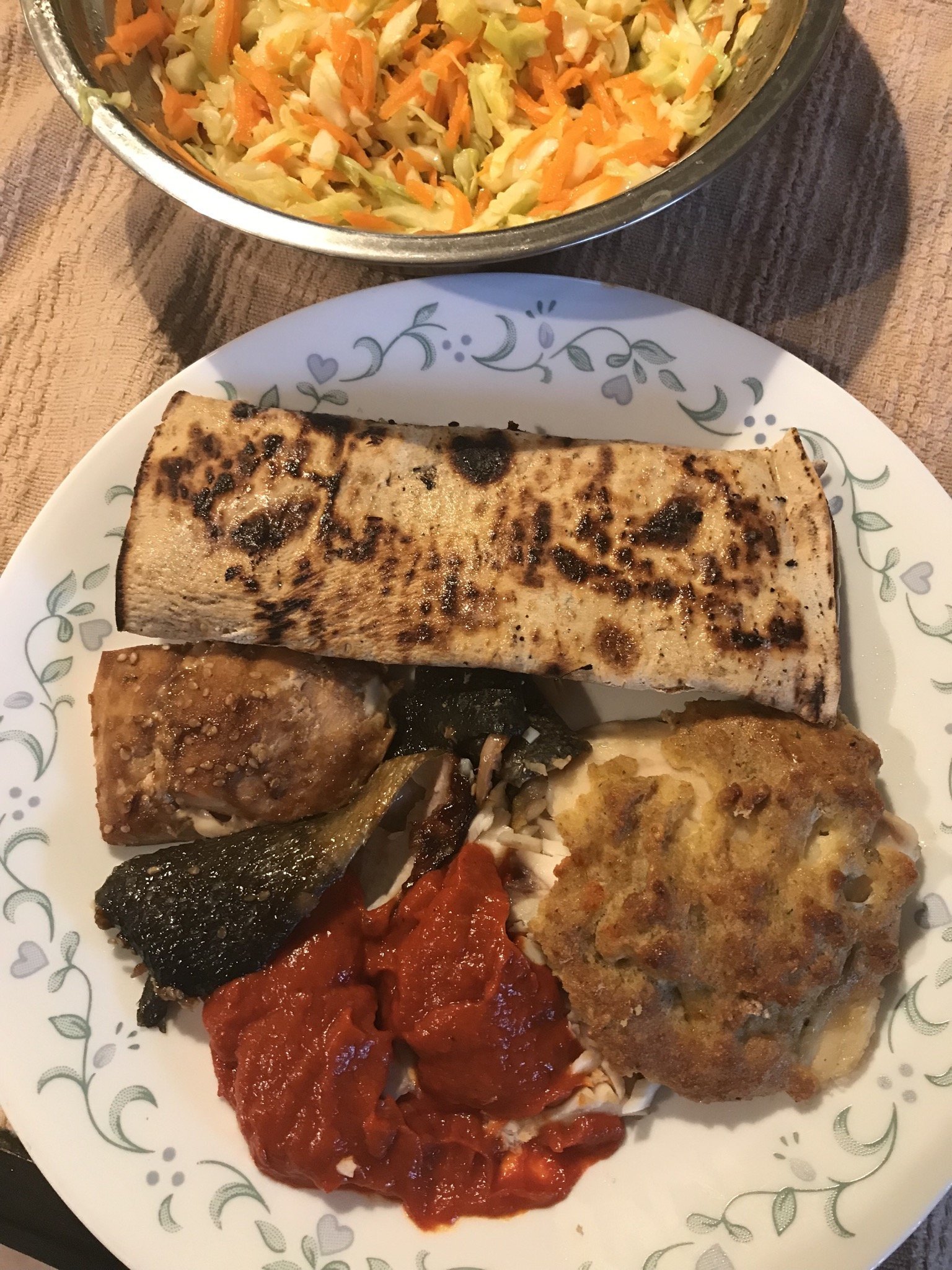 За да направите телешки кюфтета със зеленчуци направо от тавата, първо рендосайте 2 малки тиквички и ги оставете да се отцедят за няколко минути. След това изстискайте излишната вода и смесете настърганите тиквички с яйце, сода за хляб и овесени ядки, докато получите гъста смес. Разстелете тази смес върху хартия за печене и печете в предварително загрята фурна на 180°C до готовност. След това подредете отгоре кръгчета домати, сирене и кашкавал и леко ги запечете, докато сиренето се разтопи.