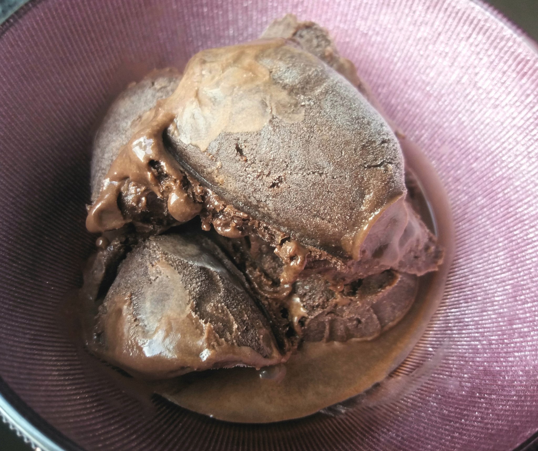 500 мл.прясно мляко,100 мл сметана,4 жълтъка,300-400гр шоколад,100гр захар.Захарта и жълтъците се разбиват.Шоколада се разтваря на водна баня,като се добавя сметаната.После се смесват с млякото и яйцата,като за минута -две клокват заедно,все на водна баня.Изстинал го охлаждам във фризера.