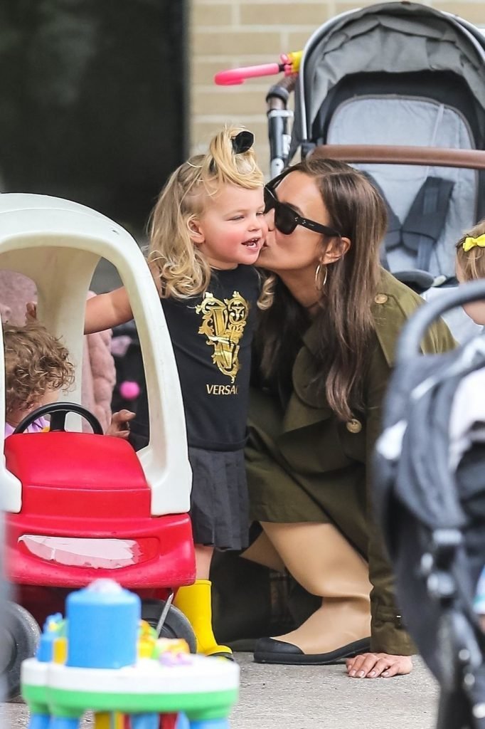 Ирина Шейк и дъщеричка, малката във Версаче, Ирина - шлифер на Burberry и гумени ботуши на Шанел
