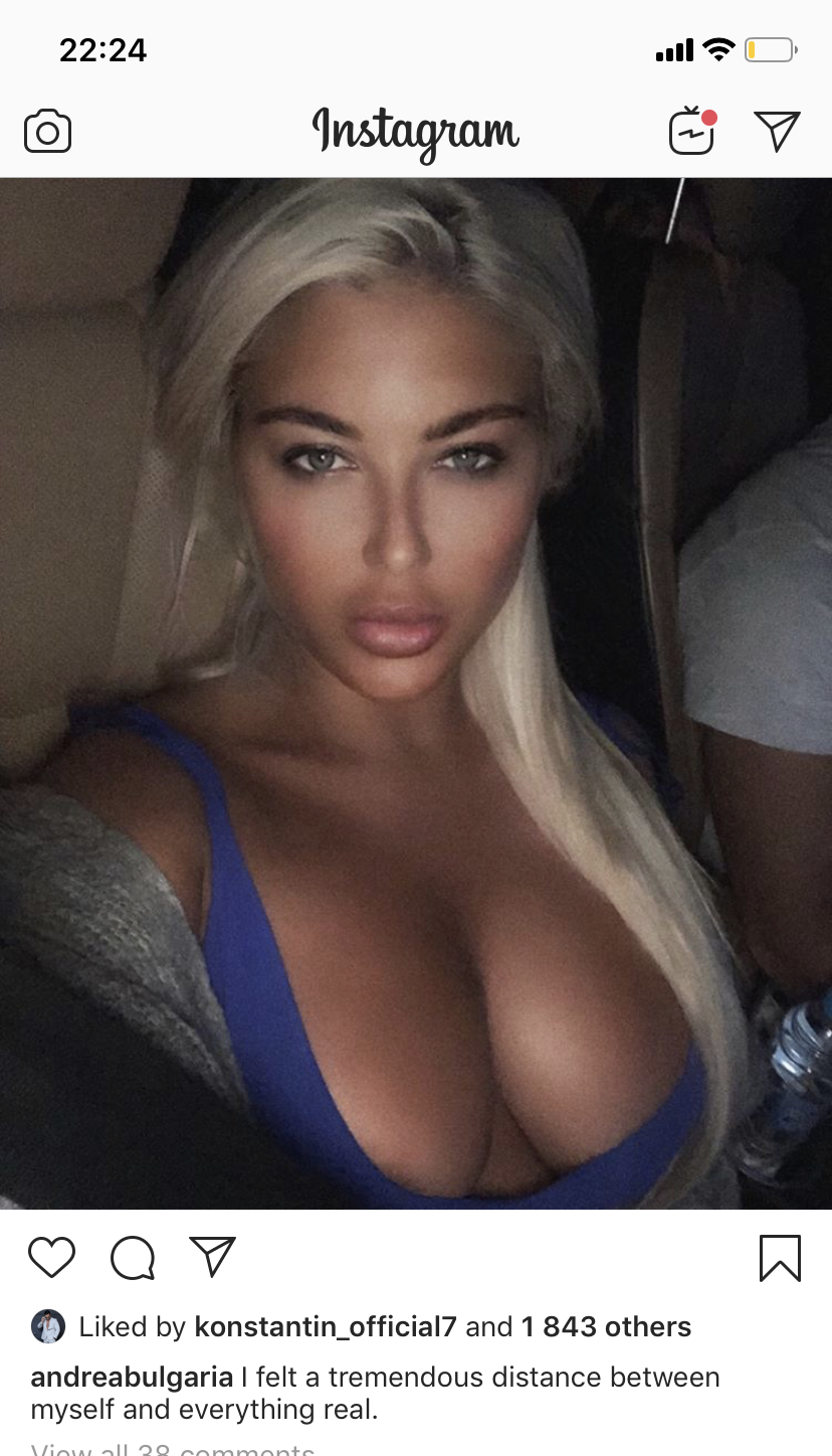 На втората снимка е Андреа. Забележете изречението отдолу: Чуствам огромна дистанция между мен и всичко истинско 😂