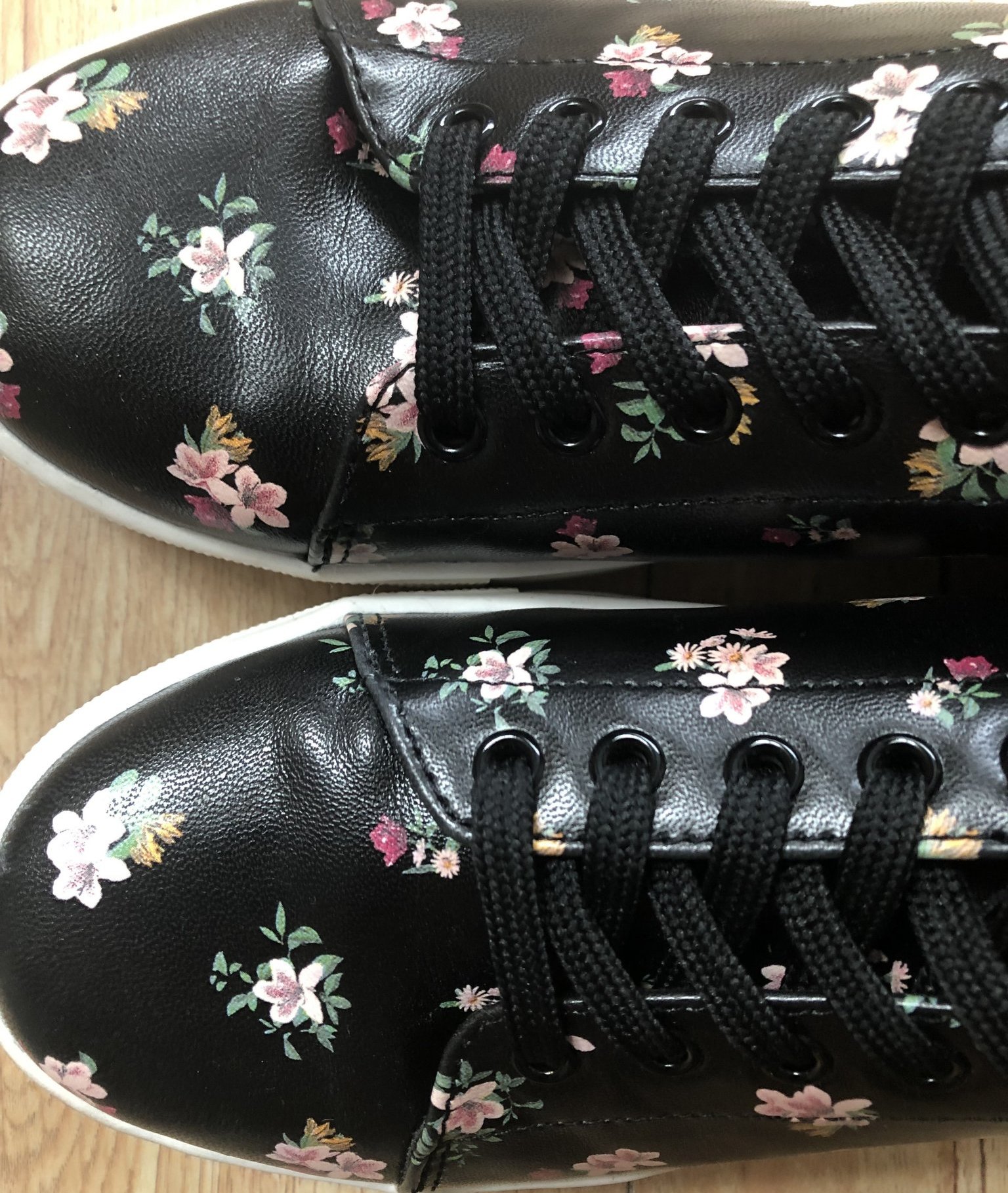 Имам черните кецове на цветя от лятното намаление миналата година . Много си ги харесвах, бяха ми супер удобни  и ги скъсах от носене, включително и зимата, когато нямаше сняг. За съжаление -миналата седмица им се сцепи подметката. Обаче мога да кажа, че напълно са си изплатили парите и ако имаше номера щях да си поръчам пак.