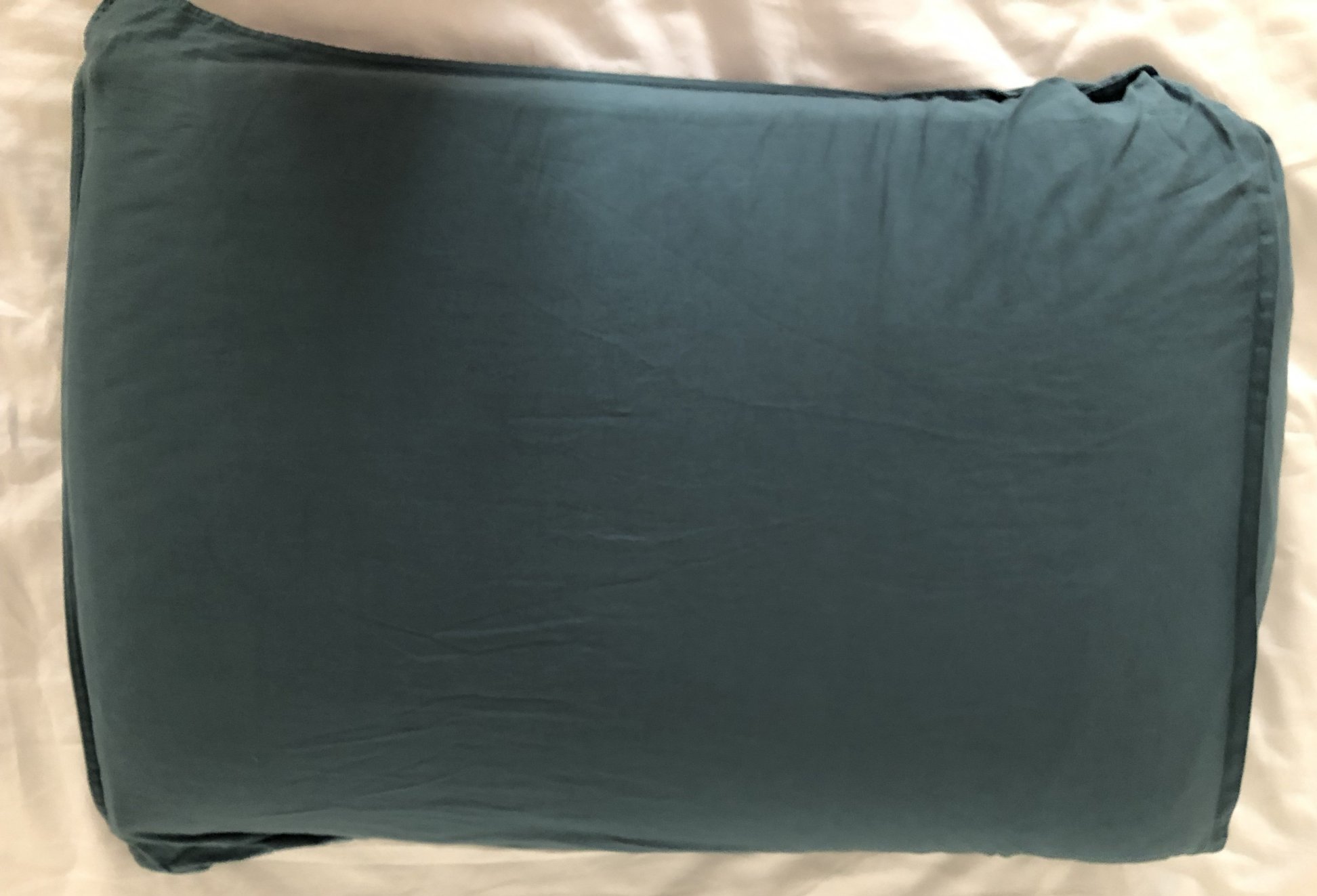 При мен става, възлгавниците са си ок след като ги сложа. Може би съвсем леко свити, но няма никакъв проблем с мемори пяната им. Ето петролената калъфа с възглавница на Магнифлекс - може и да изглежда леко смачкана, но няма промяна в усещането, като легнеш на самата възглавница
