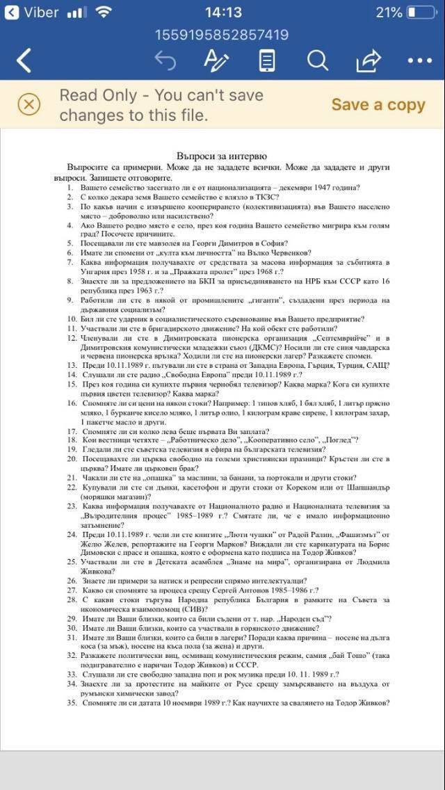 Да се смея ли или да плача не знам. По история набора трябва да интервюира по -  възрастен роднина свидетел на събитията.