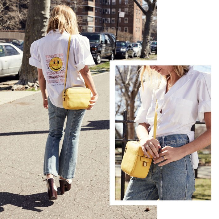 Какви са коментарите относно съчетаването на червени сандали, тъмносин панталон и риза в цвят лайм?