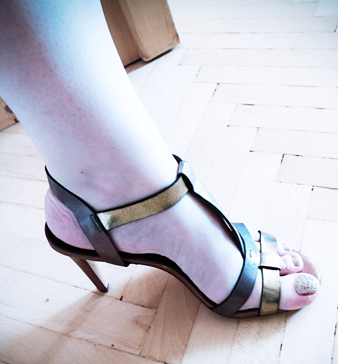 Сандалите са хубави, но никак не отиват на конкретната рокля, според мен.