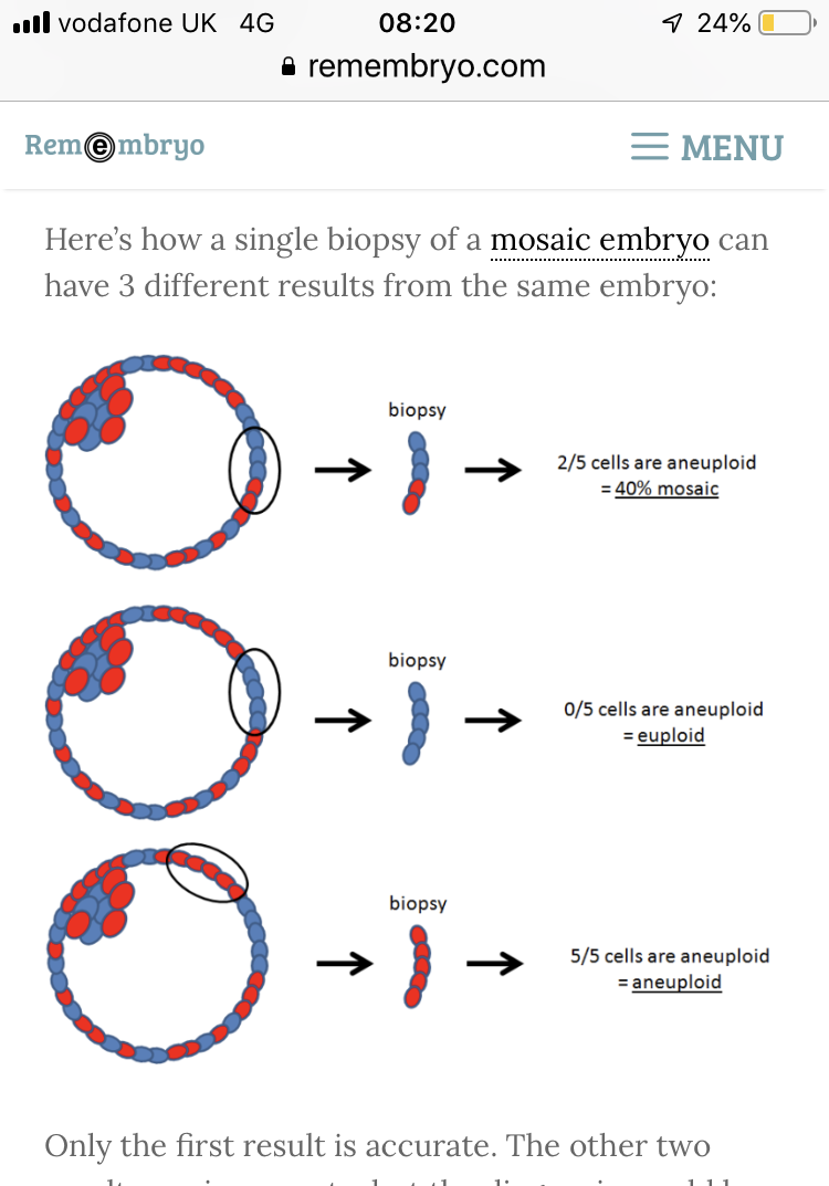 Това в картинката, която ме убеди да не го правя (виж как можеш да получиш 3 различни резултата при мозайка) + другите съображения като това, че можеш да тестваш по-нататък или че здрав ембрион може да не оцелее ПИД.