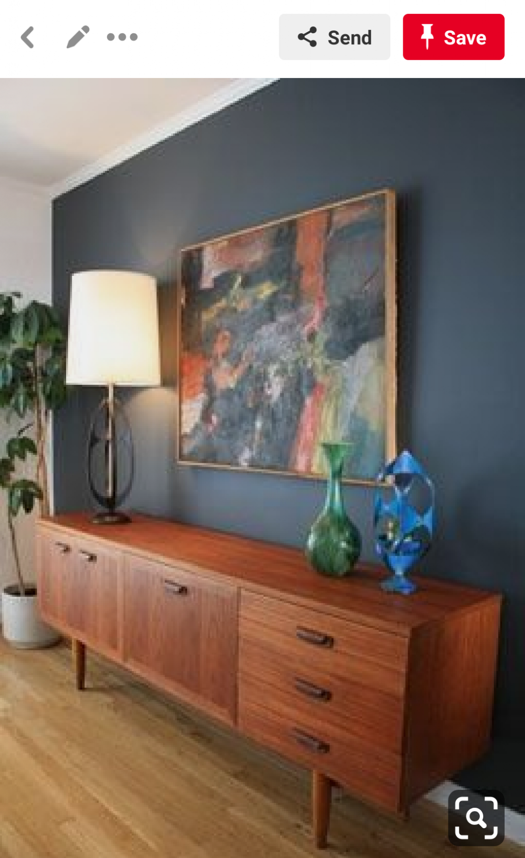 На прима виста се сещам за тъмносиня стена и картината над дивана (малко клиширано, ама..) и  да е подобна цветово- https://static.wixstatic.com/media/1f898f_58bfe1b36302492c96f369 … l_c,q_90/file.jpg
