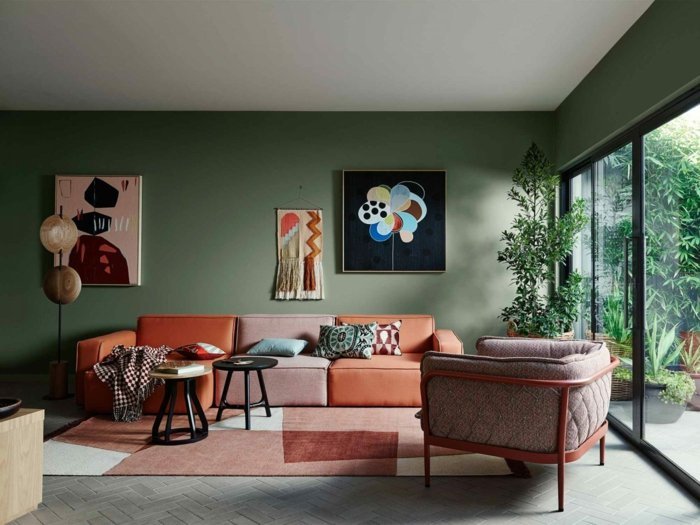 Зелено със сив подтон се нарича "маслина" Hands V Назад пак бяхме коментирали червеникави мебели с какви стени... и имаше доста снимки. (В тази тема, преди баните с голямо огледало)