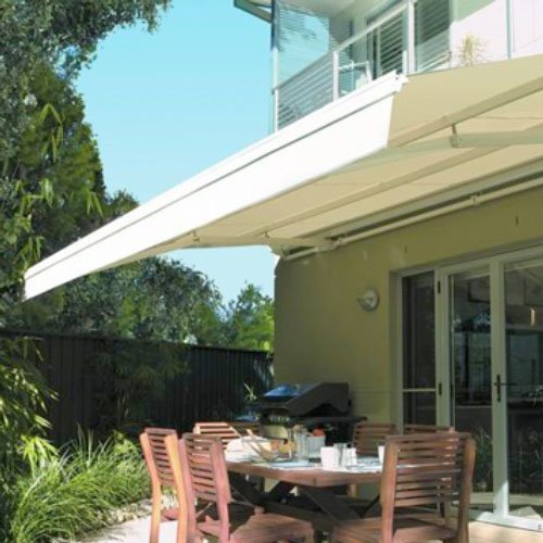 Queen L, на прозореца в хола имам както външна щора, така и извита тента от този тип..
