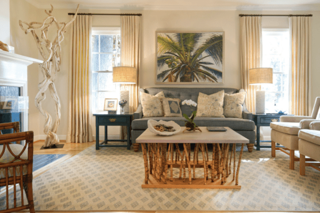 Тропически стил в хола се постига най-лесно с цвят, текстури, живи растения и аксесоари - плетени кашпи, масичка от екзотично дърво, възглавници,  пердета, ярък цветови акцент на някоя мебел и т.н. Ако правилно разбирам какъв ефект търсите, може би нещо такова?