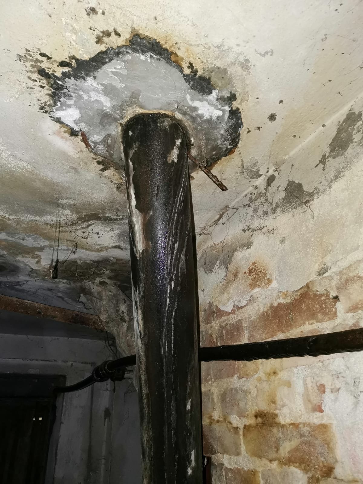Отдушник е имало точно до комина, стигащ до мазето, но съседа над нас го е "резнал", без да пита никого.