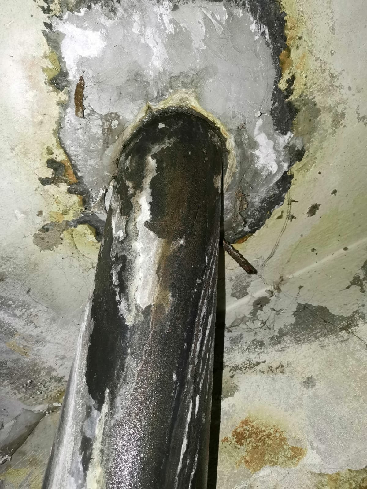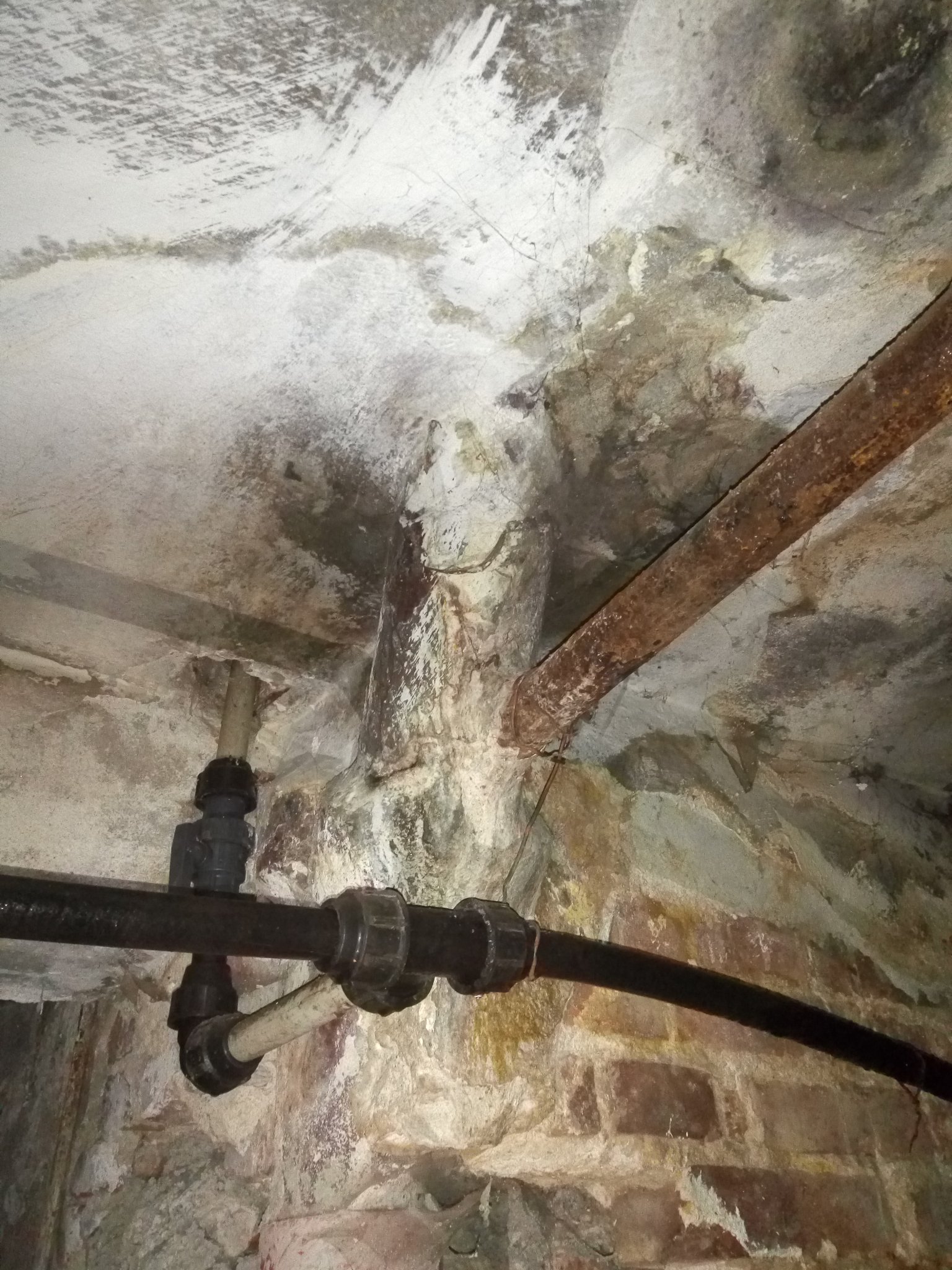 Това май се каменинова тръба за отходния канал -  онова замазаното, дето минава от вертикално в хоризонтално (ужас, как го обяснявам само Angry). Пускани и връзвани са и други тръби, само специалист ВиК или строителен инженер може да се оправи с това.