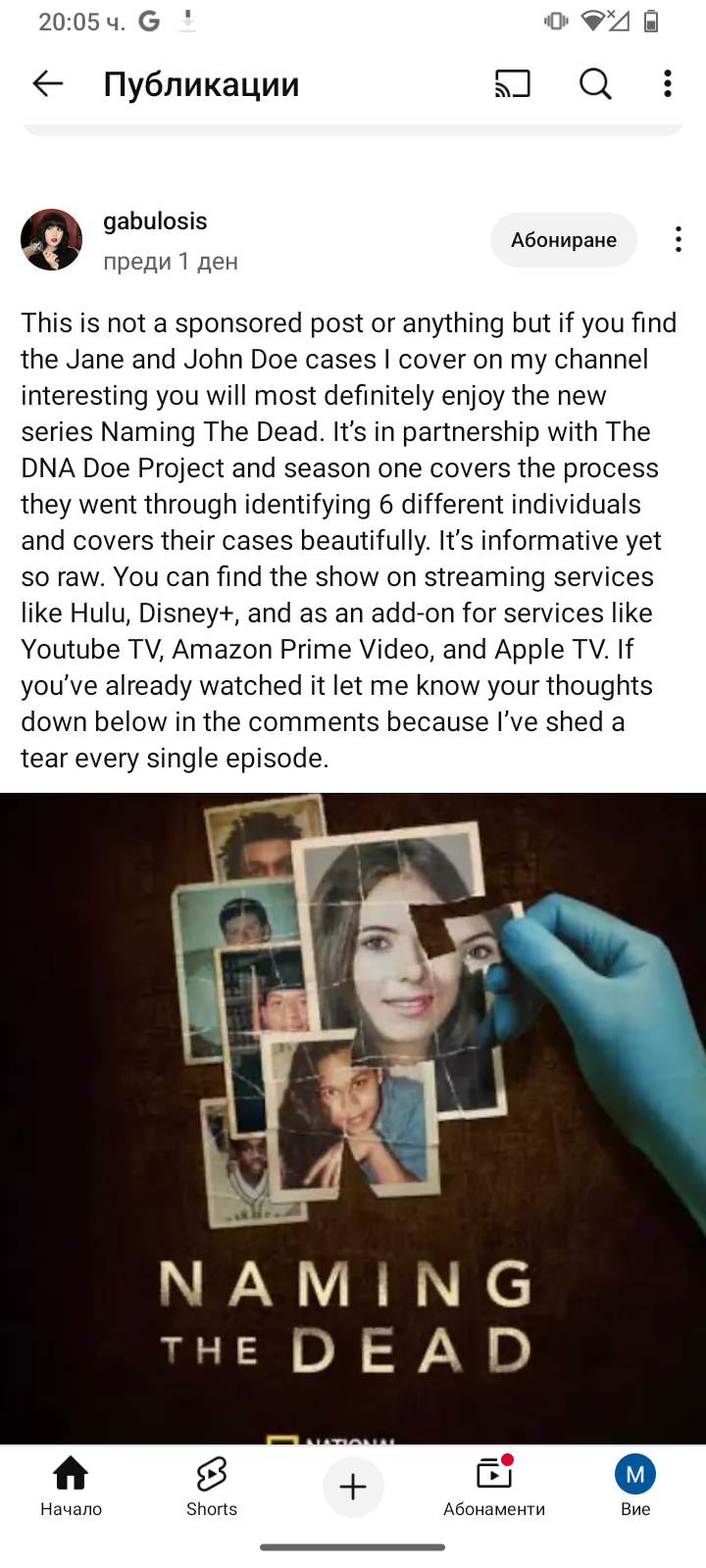 Попаднах на мн.интересен сериал по Нешънъл Джеографик за действителни случаи на идентифициране на отдавна намерени останки на хора. Казва се "Имената на мъртвите"