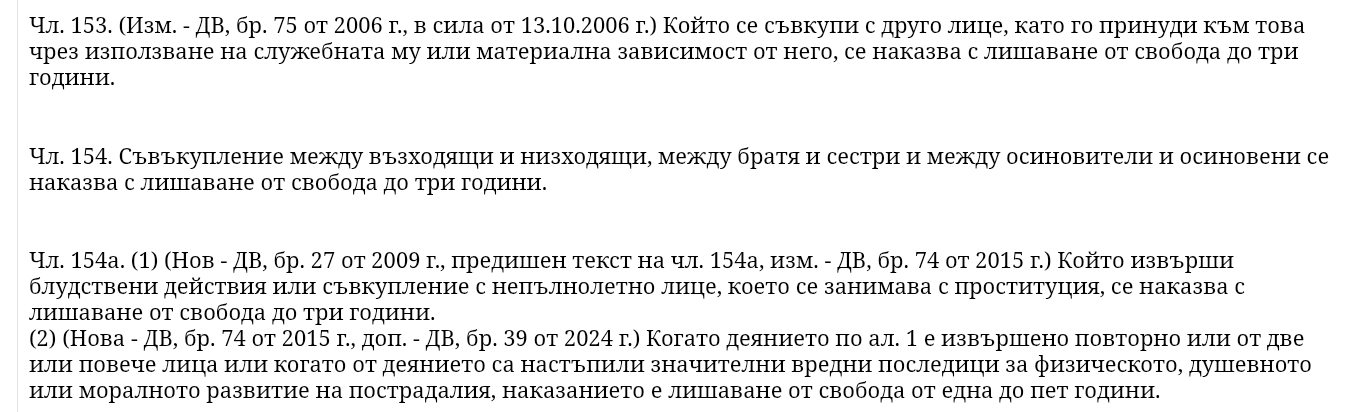 Не могат да се хванат, защото чл 151 е конкретно за секс с малолетно лице, а следващите са за изнасилвания при непълнолетни и малолетни.