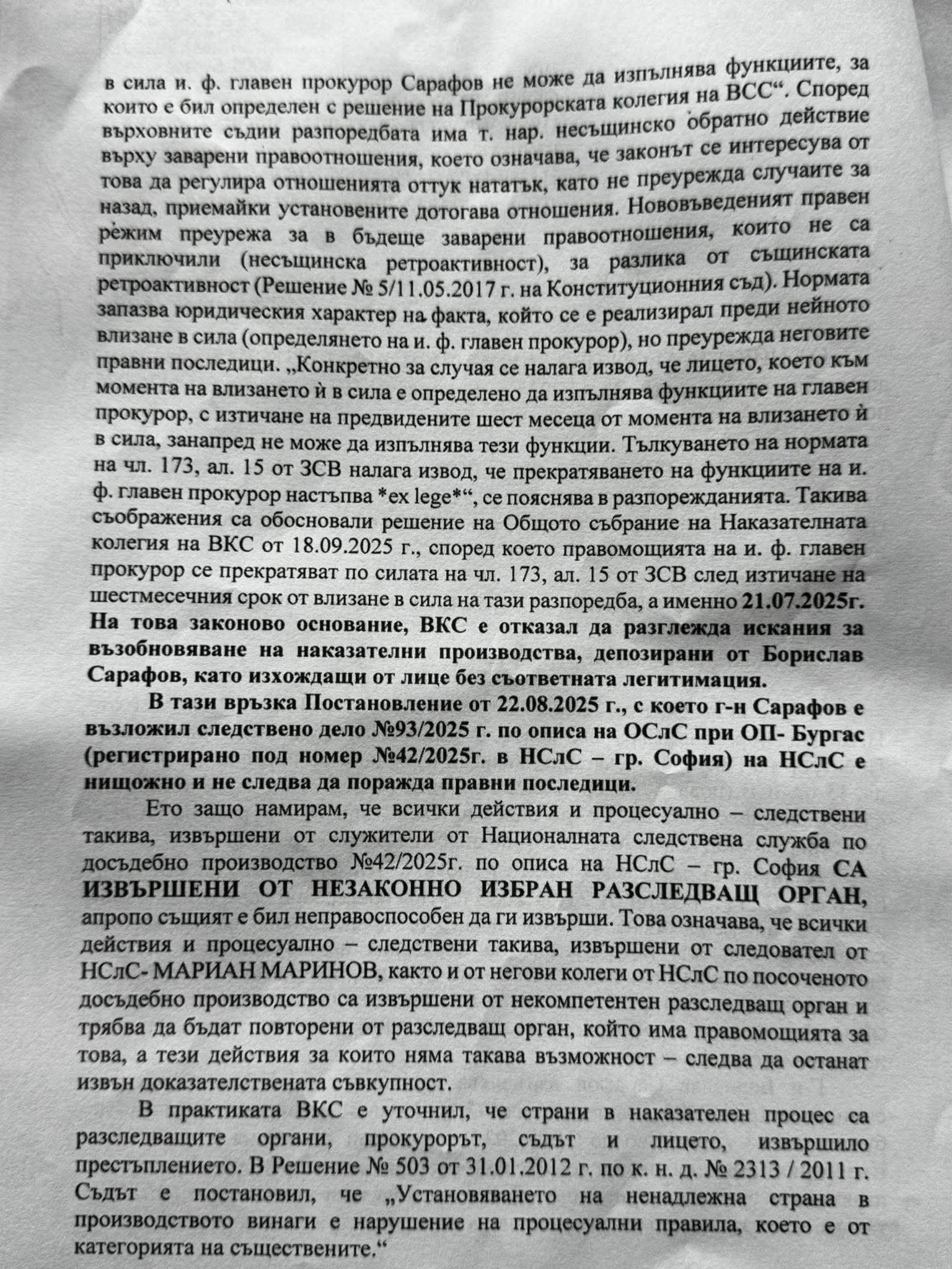 "За жалост се оказах прав. Двете решения на Лада Паунова и Бисер Троянов, с които не се признават актовете на и.ф. главен прокурор на Р. България Борислав Сарафов веднага бяха използвани от защита на Никола Бургазлиев, който прегази Марти и уби майка му Христина.