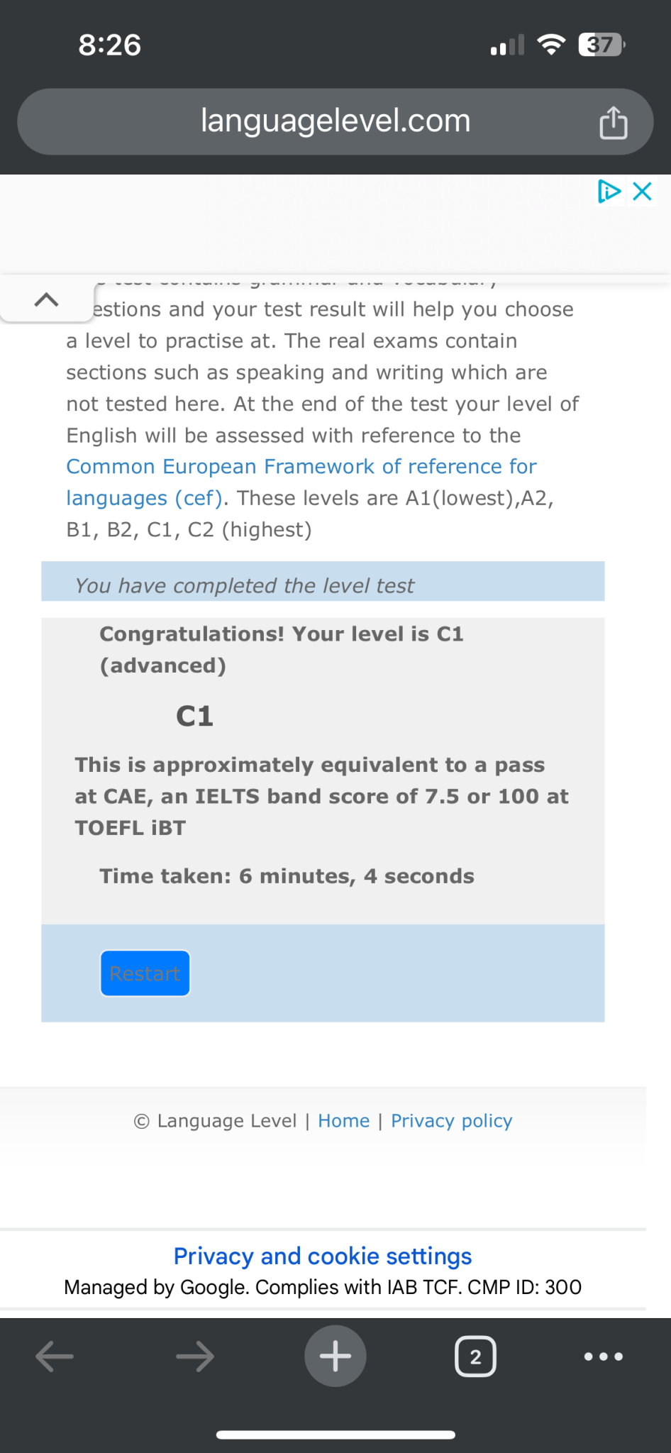 Аз на английски мога само да се представя и да си купя нещо в магазина, да питам за посока и др., но свободен разговор не мога да водя. Няма как да е C 2.