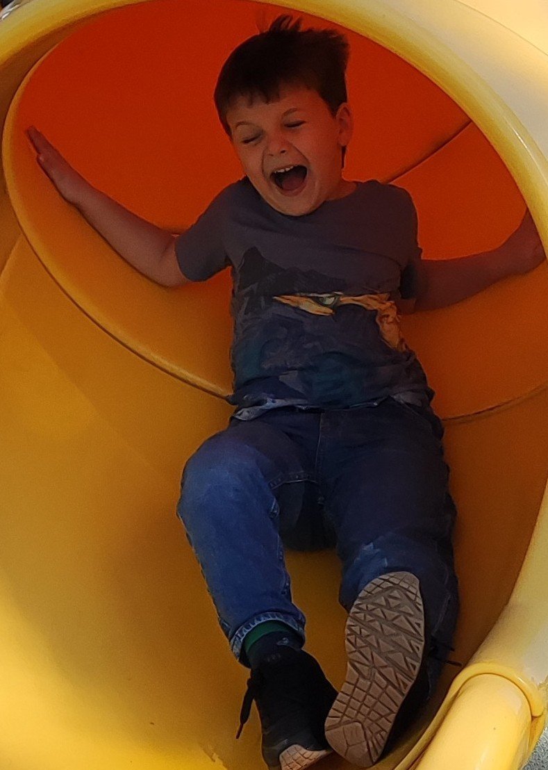 Преди няколко дена, за първи път от доста време, сам се засили към пързалките. Мисля...не, сигурна съм, че аз бях по-щастлива от него.