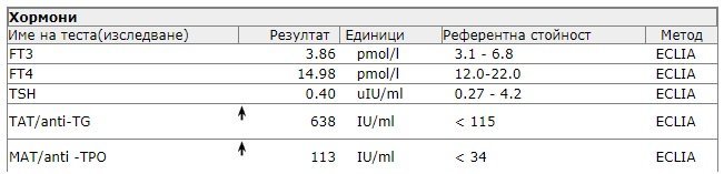Миналата година още към букета се добави и повишено ТСХ и Тат и Мат хвърчащи много, така че си имам и Хашимото.