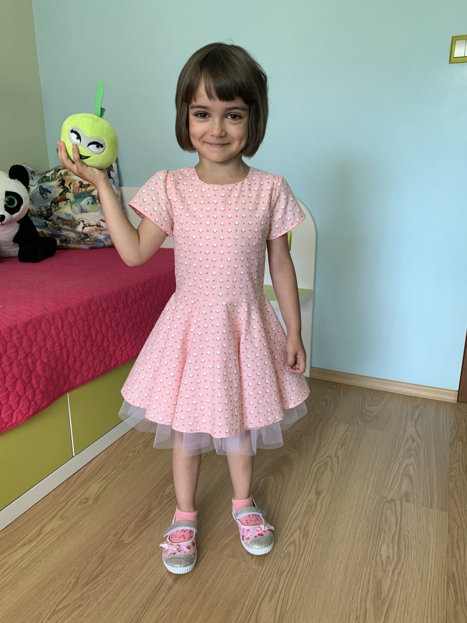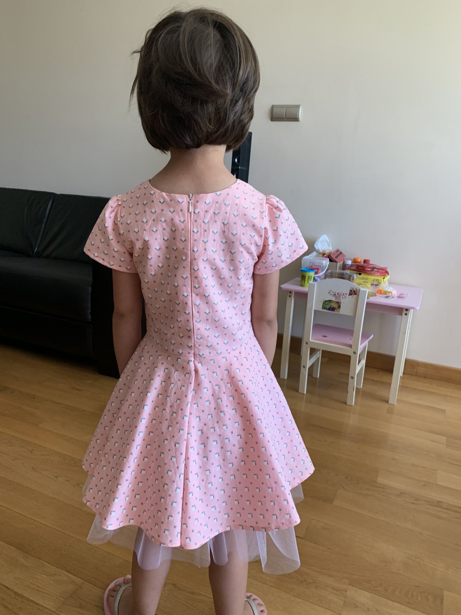 Още не съм завършила роклята на малката от Април, но успях да зашия доста добре, като за сефте скрития цип, както за плата, така и за подплата. Останаха ми само ръкавчетата, които кроих 4, 5 пъти Simple Smile Вече са готови за шев и да коригирам малко тюла.