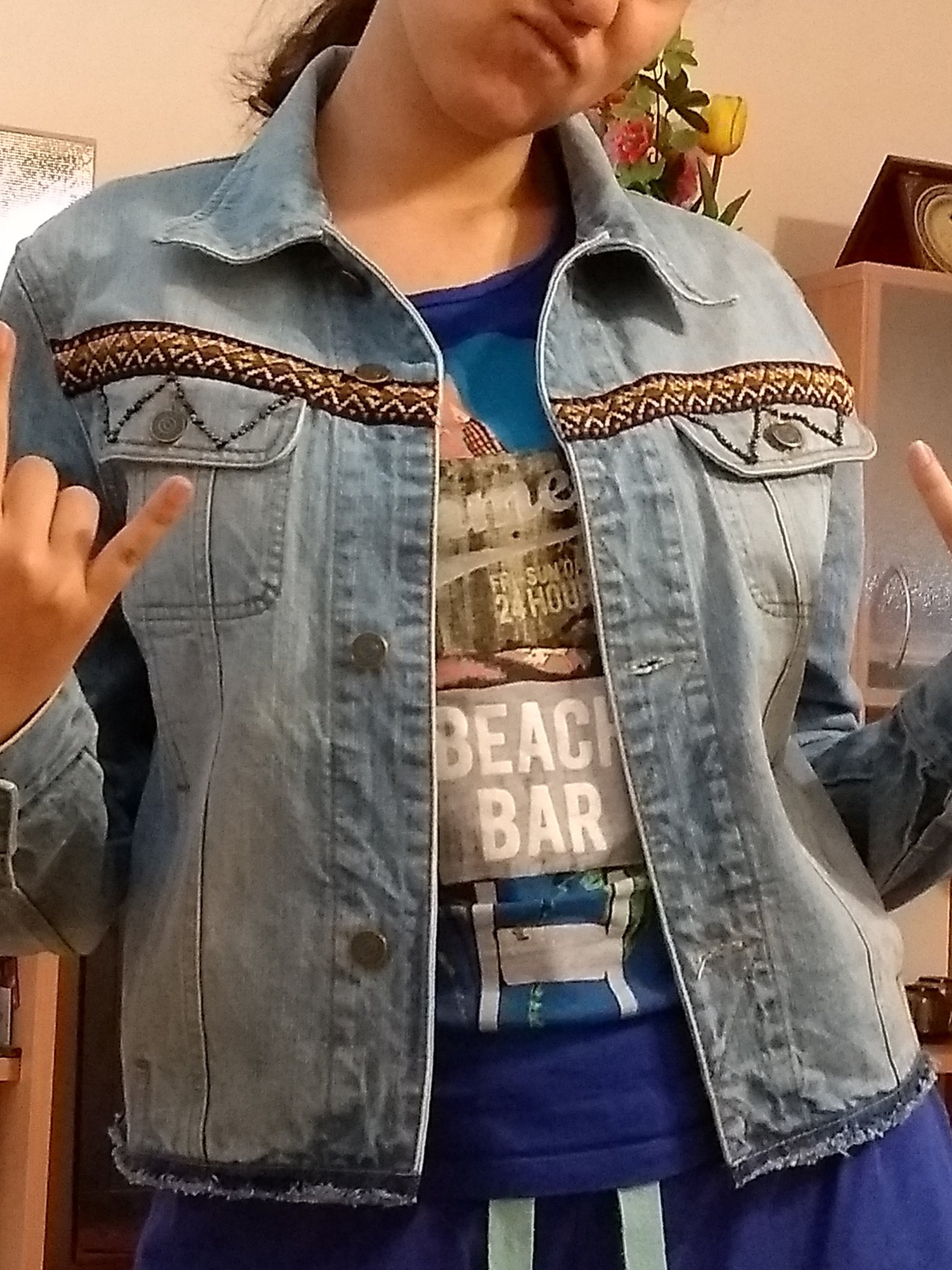 Последното ми творение. Като прирева девойката искам дънково яке уникат. Идеята си я откраднах от едно дънково яке на S.oliver.