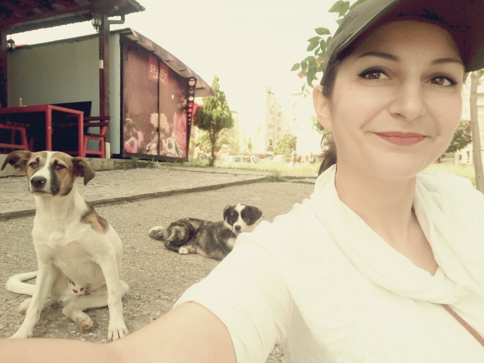 Тъкмо си чета темата (седнах на едно бордюрче, на сенчица, да си почина) седя и се хиля, като си представям вашите ветеринарни истории и си викам "брее, само аз няма какво да кажа в кучешката тема", обръщам се, да стана, да си събера кесиите с покупките и какво да видя... А! Имам си компания...