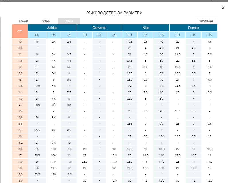 Благодаря! Явно от телефона не ги отваря, на лаптопа ги видях. Но естествено точно на размера на сина ми (15см), не пише нищо. Ще рискувам, пък каквото стане.