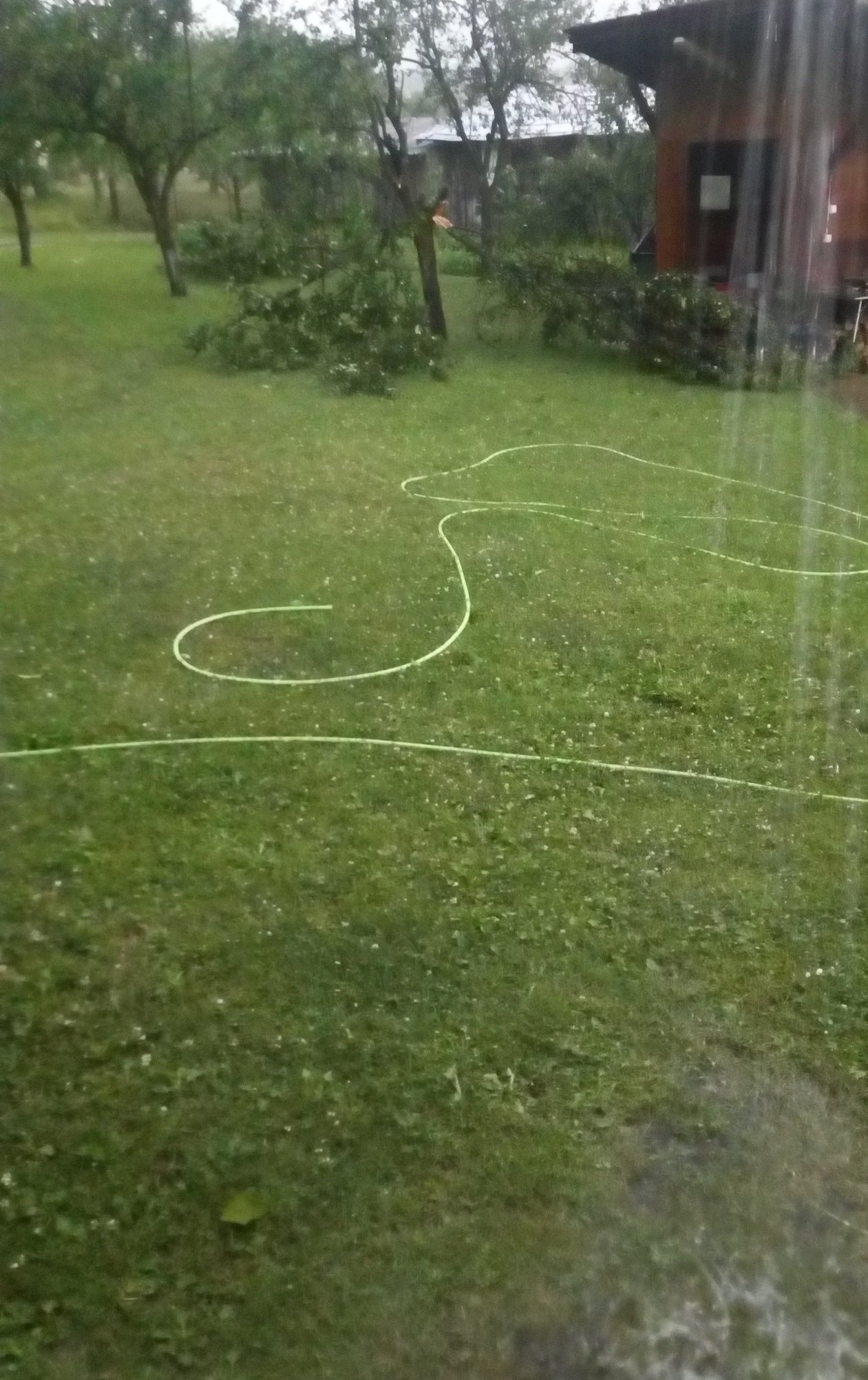 Снощи имаше яка буря и град, сливите се изпочупиха, цветята от терасата също се изгътаха, доматите прекършени, тиквите прекършени, динята тъкмо вързала едно плодче и е прекършена, слънчоглед три метра висок всичко е на земята, боба е по зематя, ужас. Най много ме е яд за тиквите и динята , направо ми се плаче. Тъкмо сложихме нов найлон на оранжерията и него свлече на земята и го скъса, само пипера се запази и една част от доматите който бяха под мрежата. Надявам се другите растения който са пострадали да се стабилизират