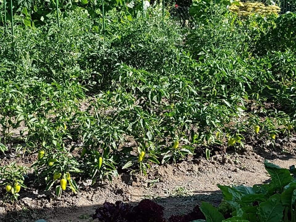Доматите са силни, здрави и с много плод, но тепърва ще почват да зреят. Дано ги опитаме преди да заминем за лятото.  Чушки почнахме да берем, много вкусни. Ася,  ще имаш семена,  успешен е експеримента. Смилянския фасул е до небето, с много цвят. Ще видим наесен що ще наберем.