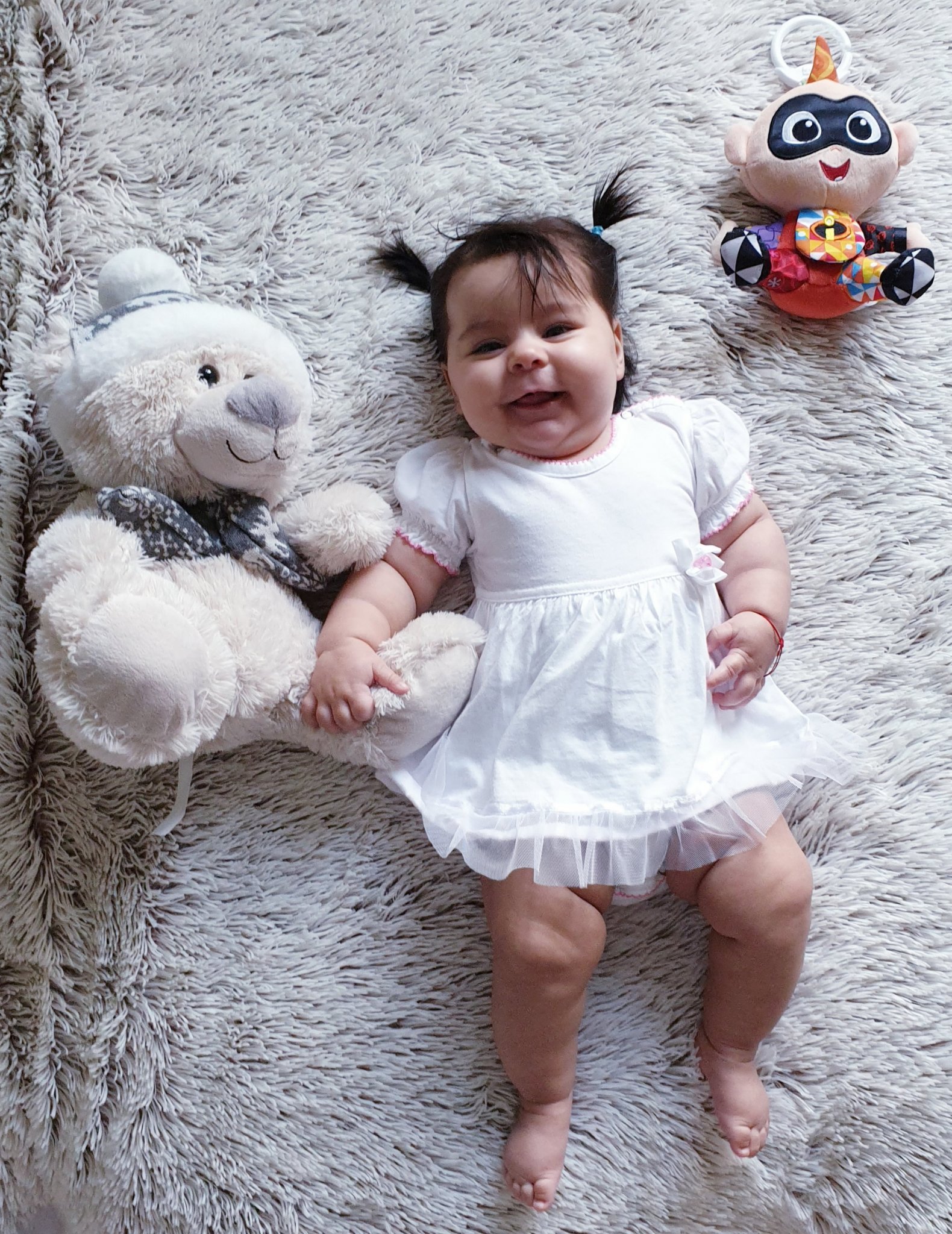julsianna, да ви е жива и здрава сладурката. Откъде я извадихте тази коса 😂😂😂 Моите и двете имаха коса, но супер рядка и къса. На каката на 1 г. й правех кукуригу от 5 косъма, за да не й викат момче( въпреки роклите 😜)