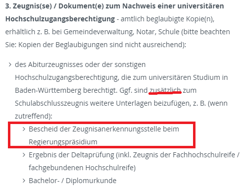 Зажалост преди телефонат с университета няма как да гадаем какво искат и какво не. Самото изречение обаче набляга, че този документ би бил нужен евентуално (!), в зависимoстт от това дали попадаш към графата със задължение да ти признаят дипломата през Regierungspräsidium-a. Това се отнася на първо място за чужденци извън ЕС. Не забравяйте, че това е обща форма, която се показва на всеки кандидат, независимо немец или ЕС/не-ЕС чужденец.