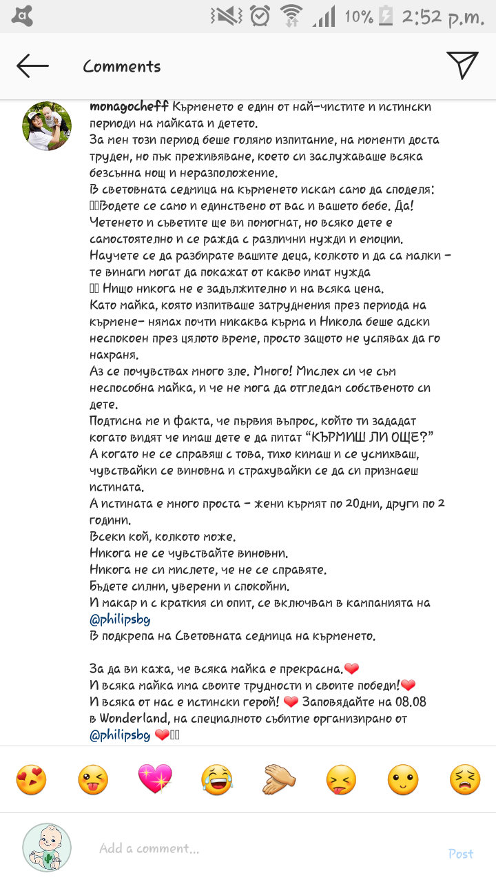 Ахаха, радвам се, че усмихвам хората. Blush Аз определено изпадам в лек ужас, какво ще стане като почне да замества, да се отбива, да се насуква за няколко минути. А преди да родя си мислех, че ще кърмя там няколко месеца,  колкото да не е без хич.