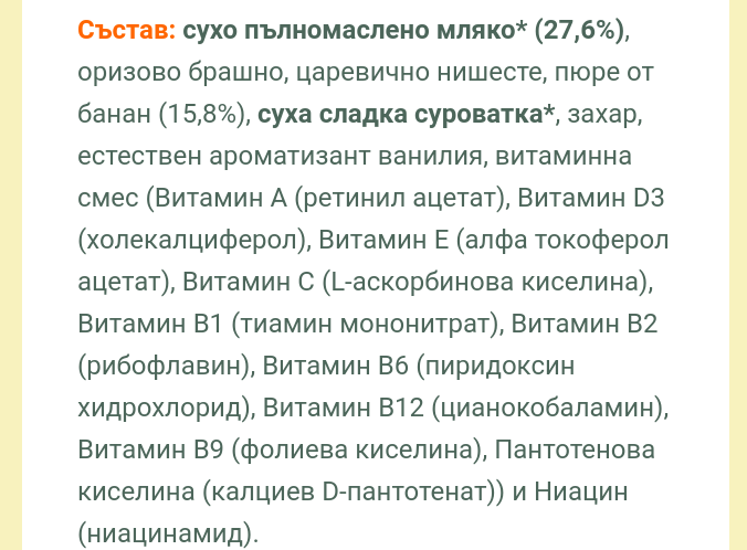 Днес ми заяви и че направила бананова каша на Слънчо. Като попитах не се ли притеснява от сухото мляко и захарта заяви: "Ама не пише да има захар. А знаеш ли колко е вкусна. Опитах я. Супер е."