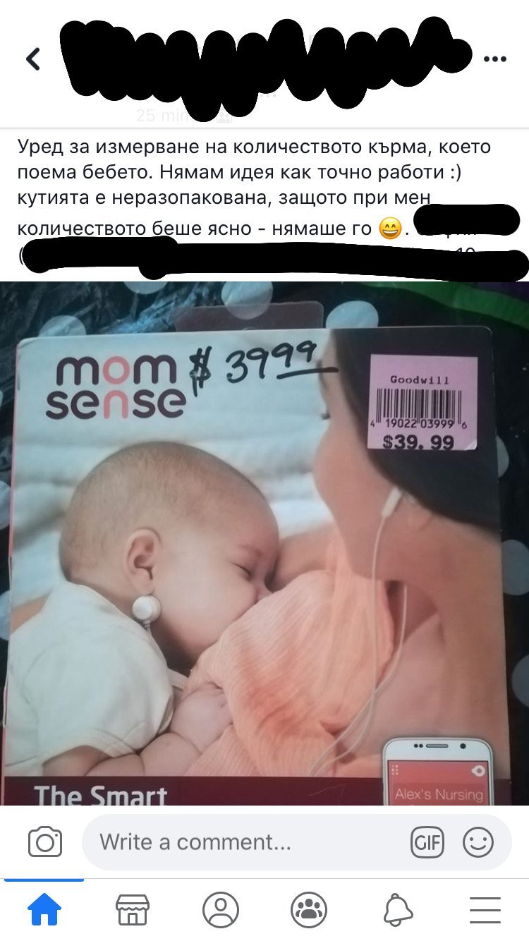 Този уред има нещо като слушалка на врата на бебето. Предполагам брои глътки. Как смята колко милилитра са обаче, не знам 😂