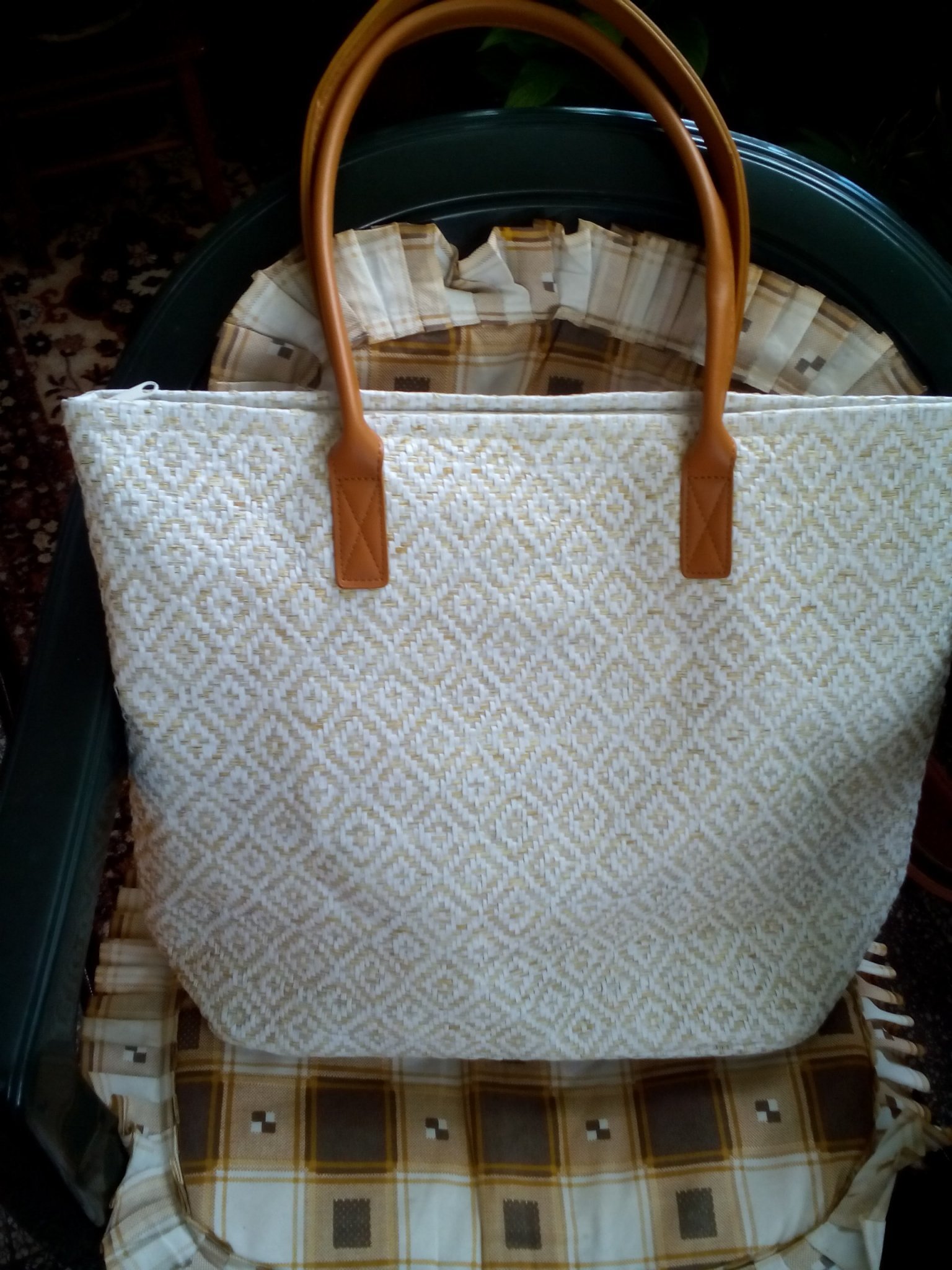 Цвете, качих снимки на чантата в предишния си пост. Ми малко съм баничка, то...труд това , щото от компютъра пиша, на телефон снимам, ходих на терасата за светлина,бе ..не съм технически добре, то се разбра)) Не е текстилна, сламена е на пипане, ама от хартия някаква пише, бе харесва ми